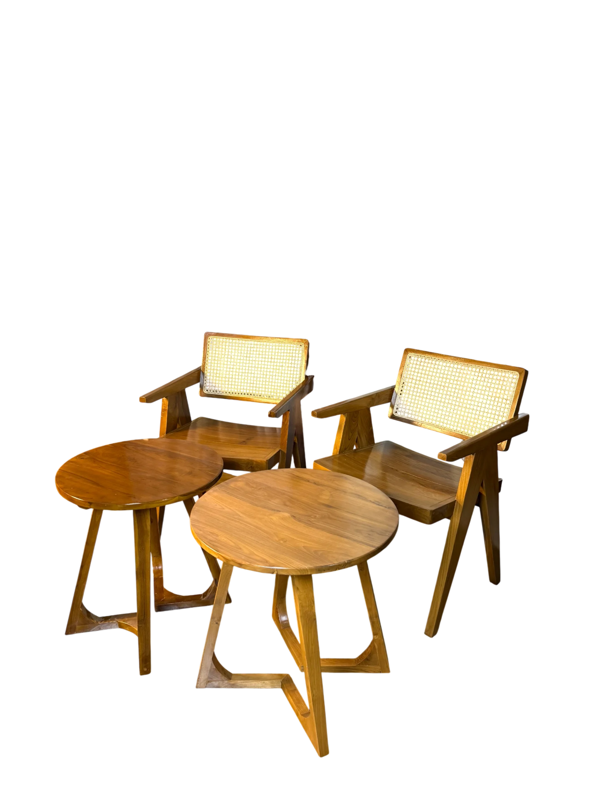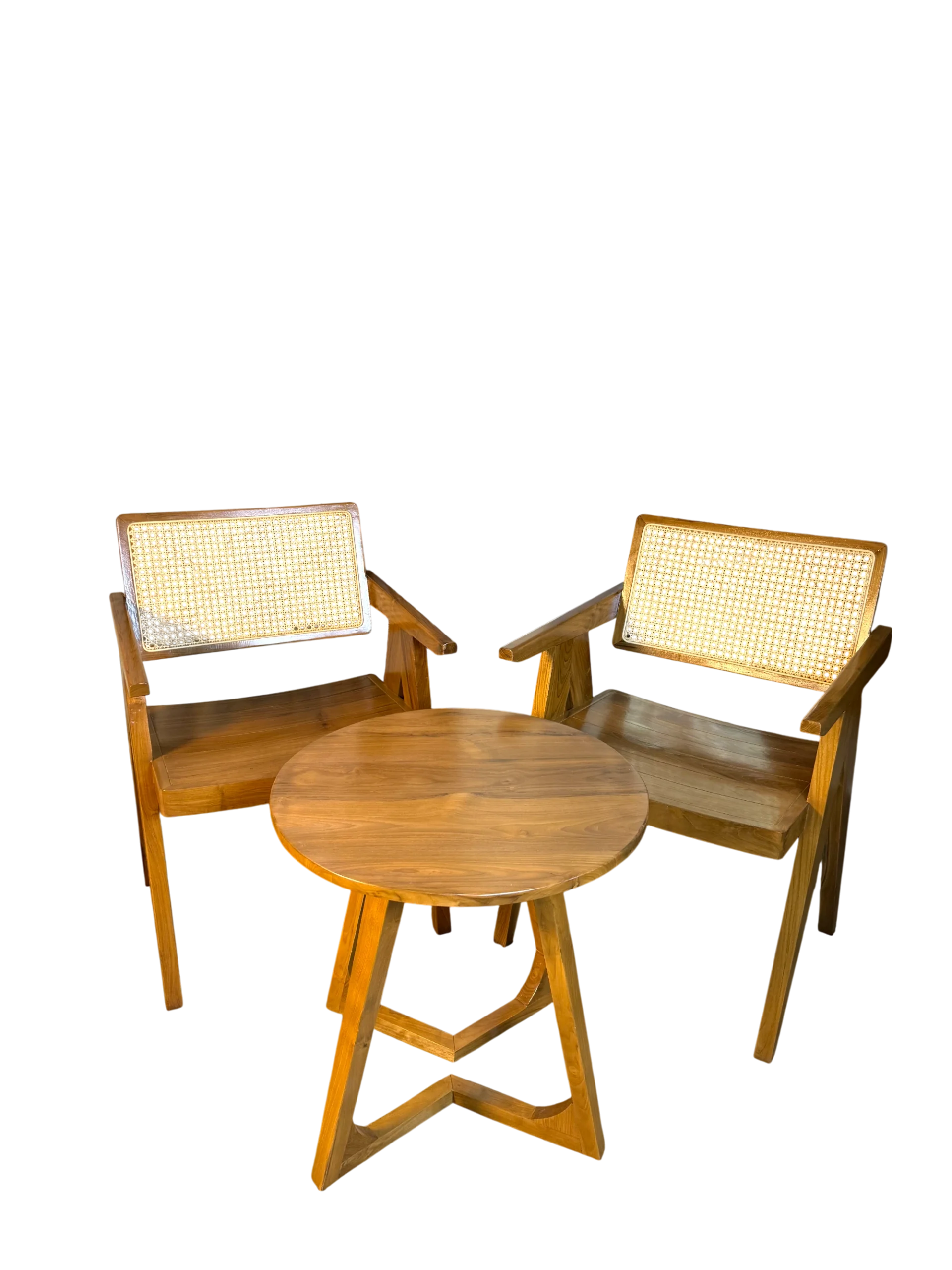 Set Teras A hadir dengan desain minimalis yang mengutamakan kesederhanaan bentuk dan kekuatan konstruksi. Dibuat dari kayu jati Perhutani Grade A, set ini memiliki rangka tebal, presisi, dan stabil sehingga nyaman digunakan untuk bersantai dalam jangka panjang.